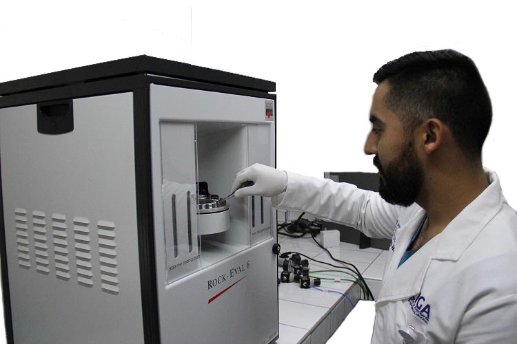 Análisis que consiste en la determinación del potencial petrolífero de una muestra de roca (TOC), caracterización de la riqueza orgánica (IH), temperatura máxima de pirólisis (Tmax), energías de activación, cantidad de hidrocarburos libres presente en la muestra y la cantidad de hidrocarburos y compuestos que contienen oxígeno (S1, S2, S3, CO/CO2).